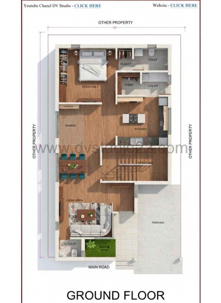 Download the PDF for the Floor Plan of 30X50 House Plan Option 17 – CLICK HERE