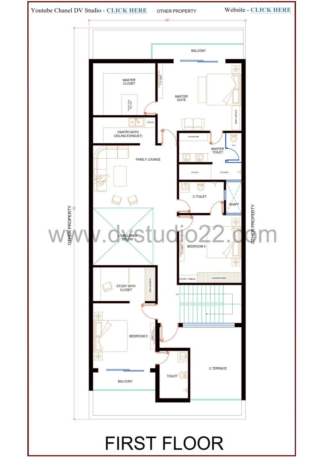 In this, you will get Floor plan layout with furniture placement in 2D, Detail Dimensions, Stairs Dimensions, and Floor to ceiling height and Wall Thickness.